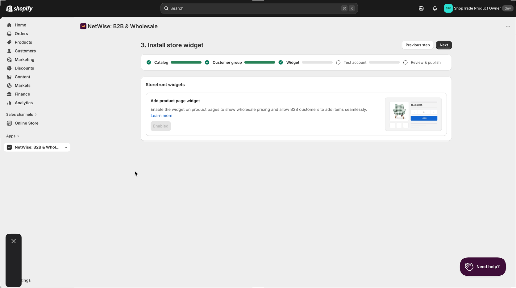 - Instant storefront preview - Log in to your live store and see B2B pricing, widgets, and catalog restrictions exactly as your real customers will.