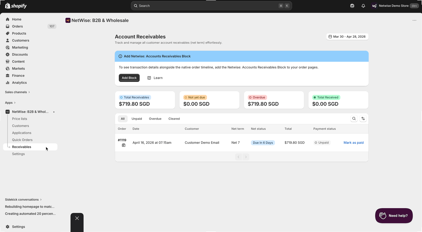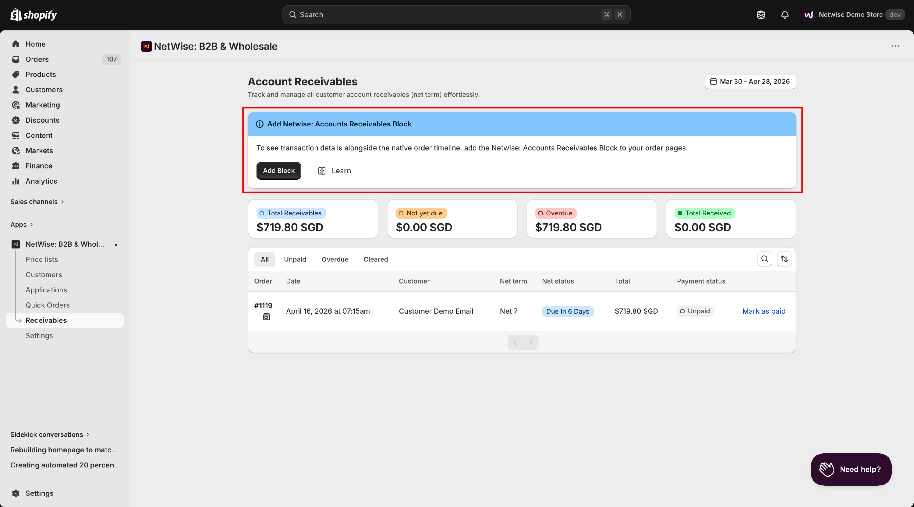How to Add the NetWise Accounts Receivable Block