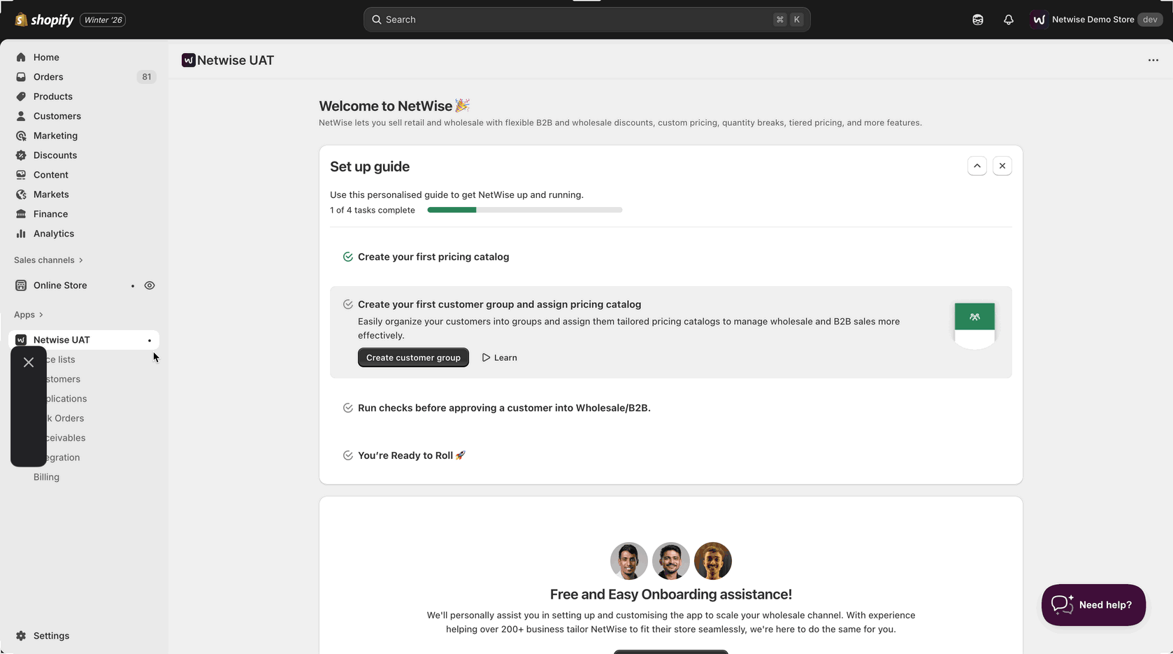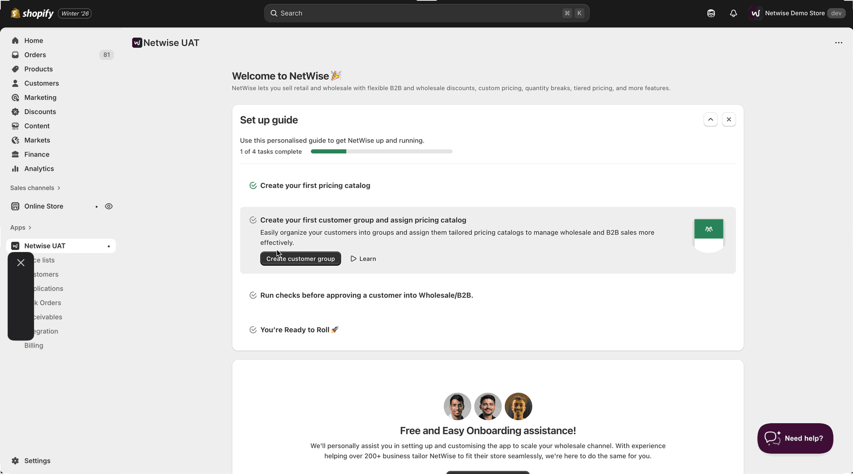 - Your customer group has been successfully created, and you’ve completed the second step in the setup guide.