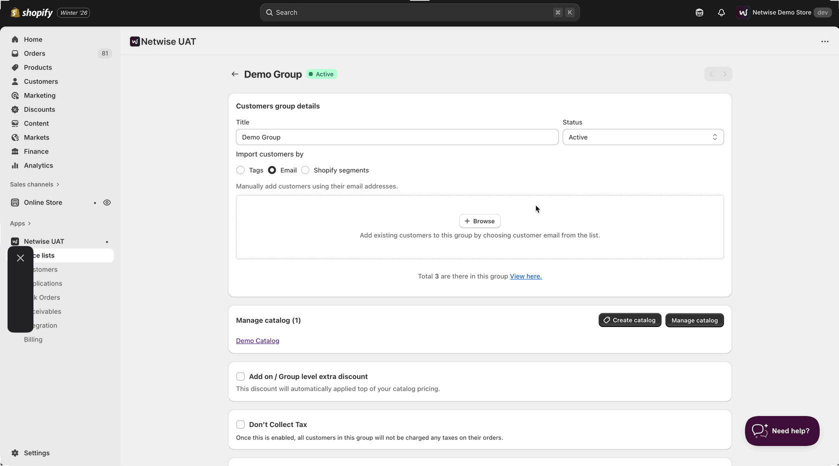 - Make sure all customers are included in the customer group based on the import method you selected.