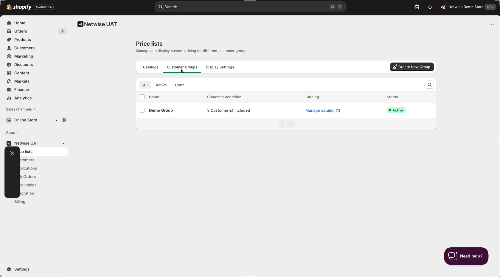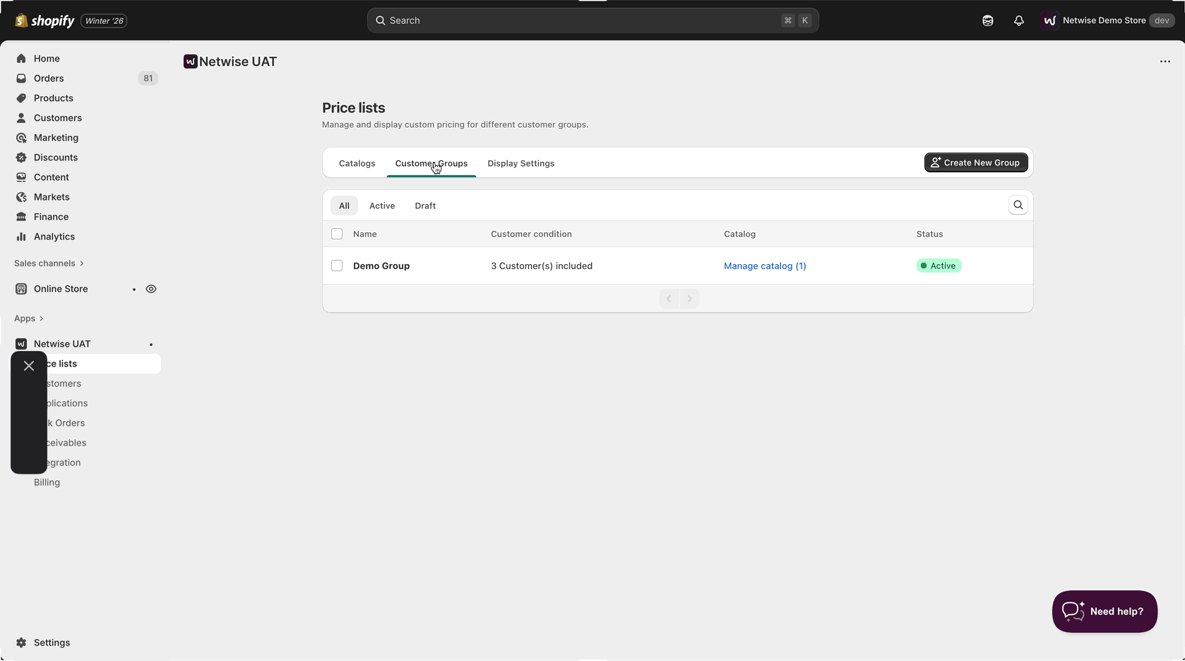 - When ready, ensure the customer group is active and all settings are configured correctly.