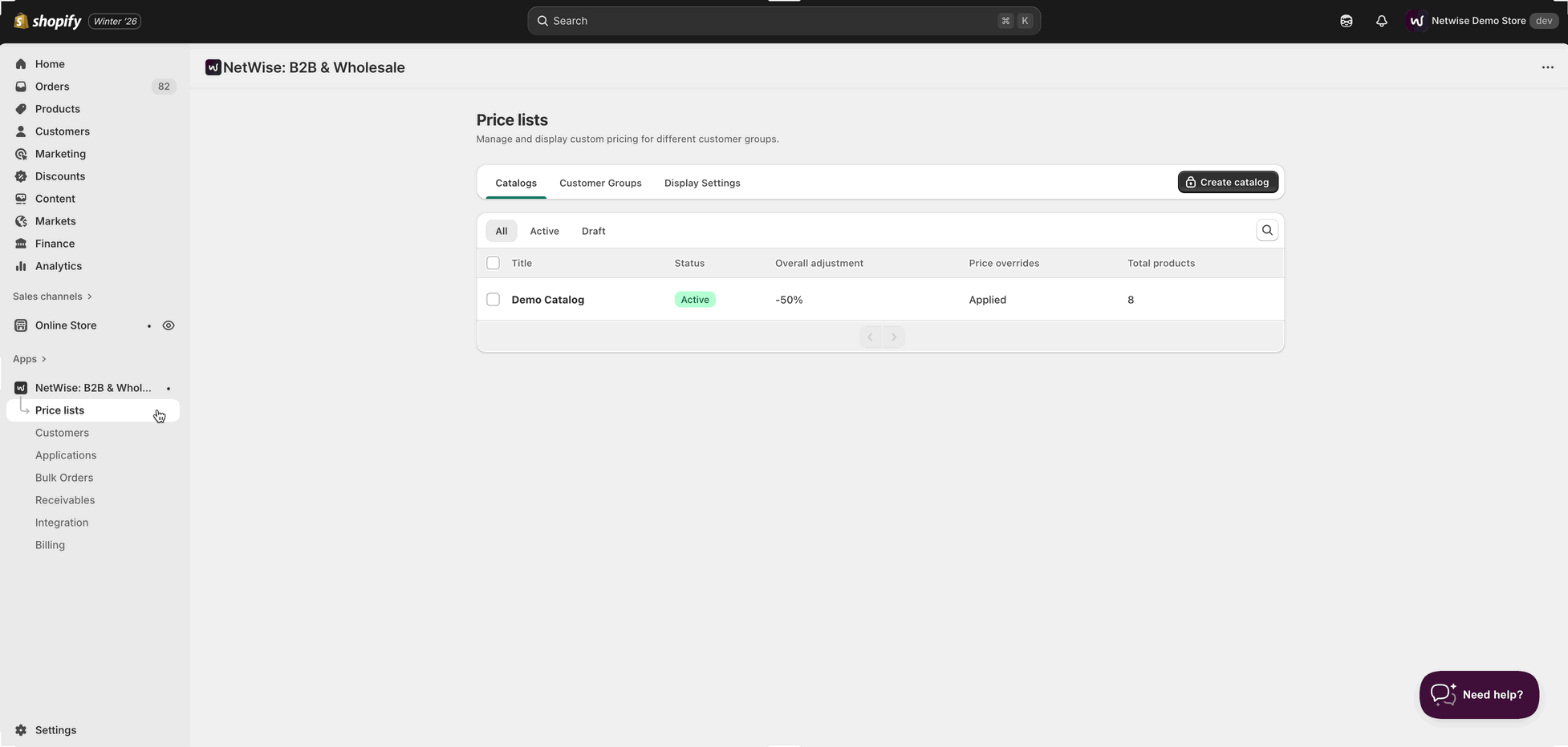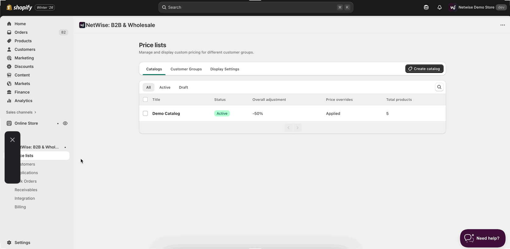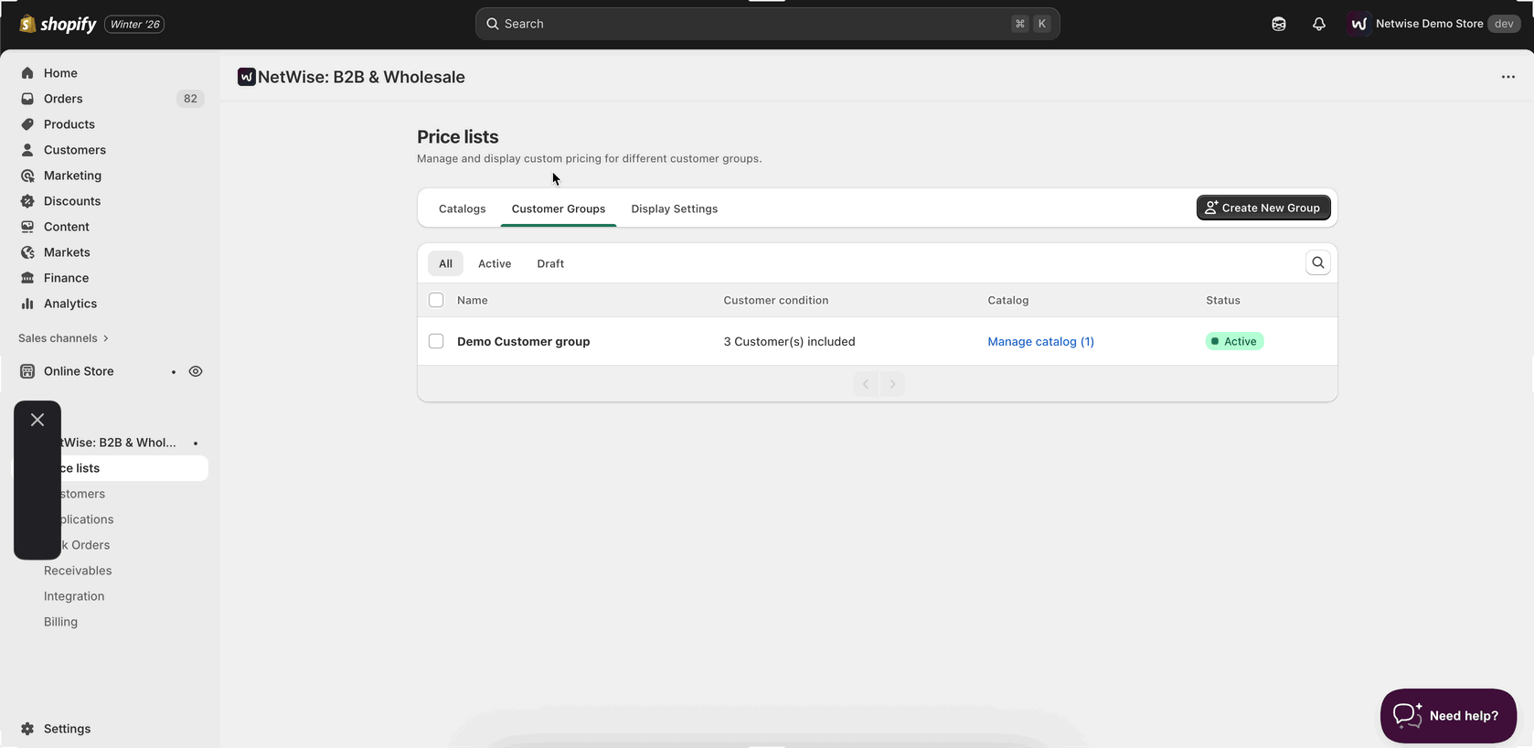 Note: Wholesale B2B prices may not appear on the collection and product pages initially. To enable pricing across these pages and other areas, follow the steps below.