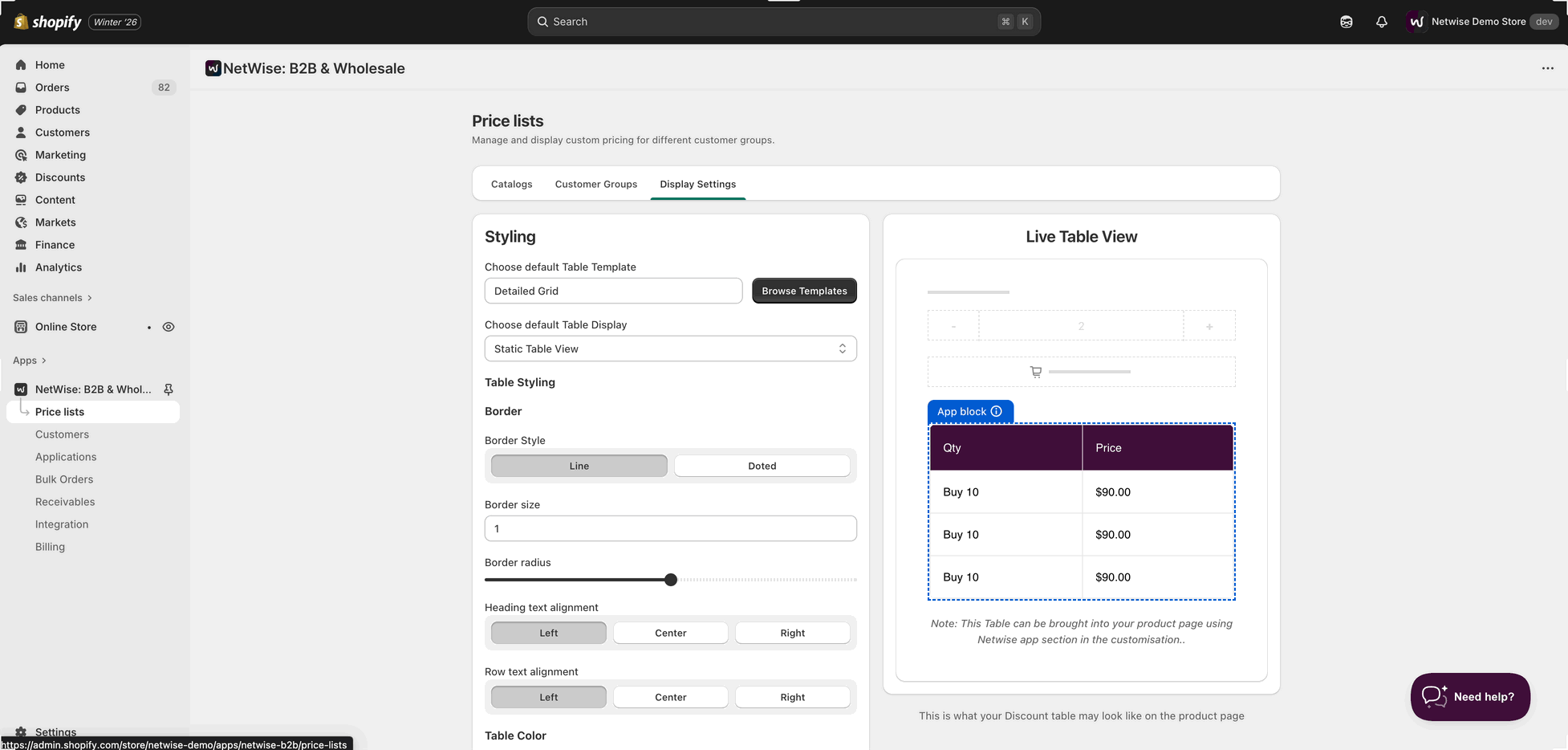 - Before enabling the app block on the product page, ensure that volume pricing is configured for each product and its variants in pricing catalog.