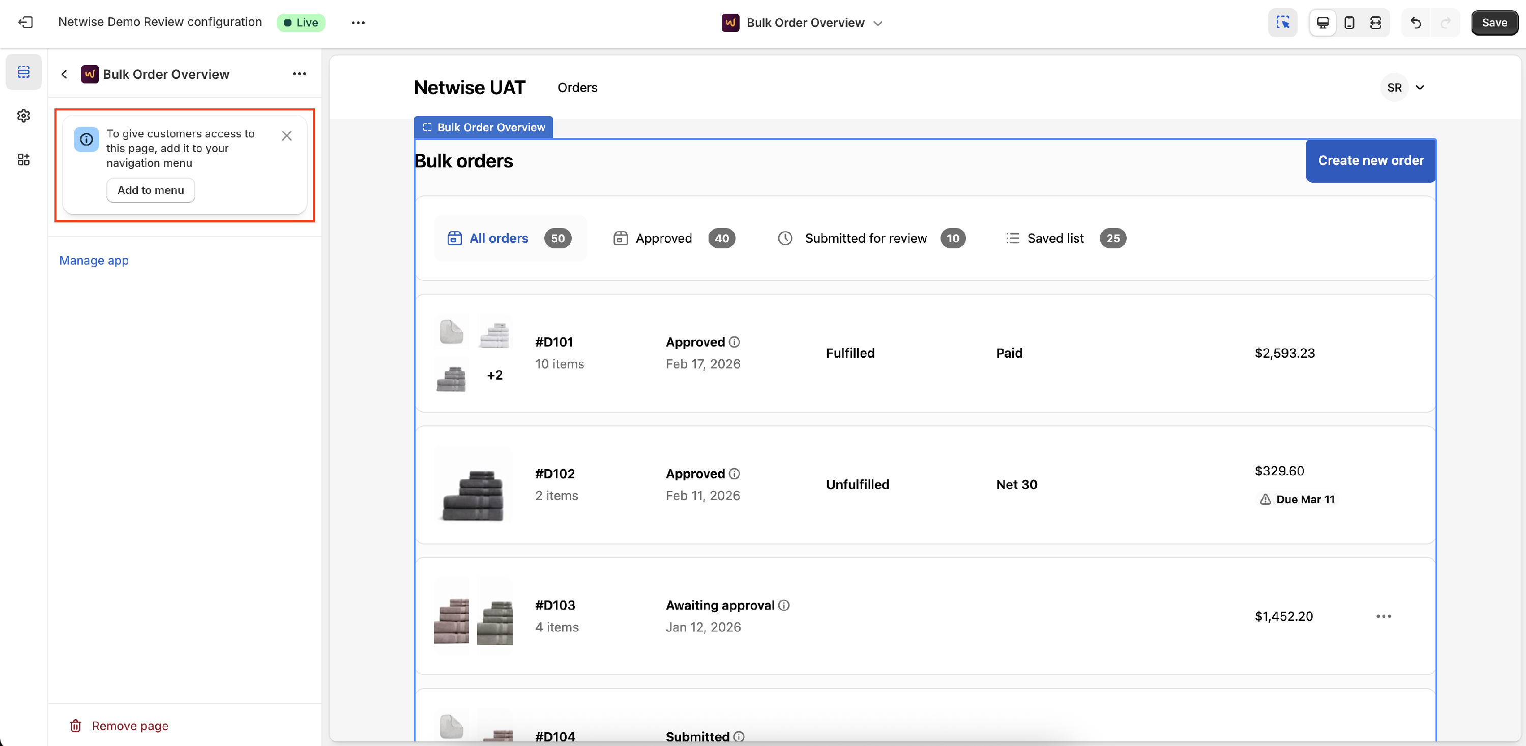 Once completed, the new Bulk Order experience will be active inside the customer account section.
